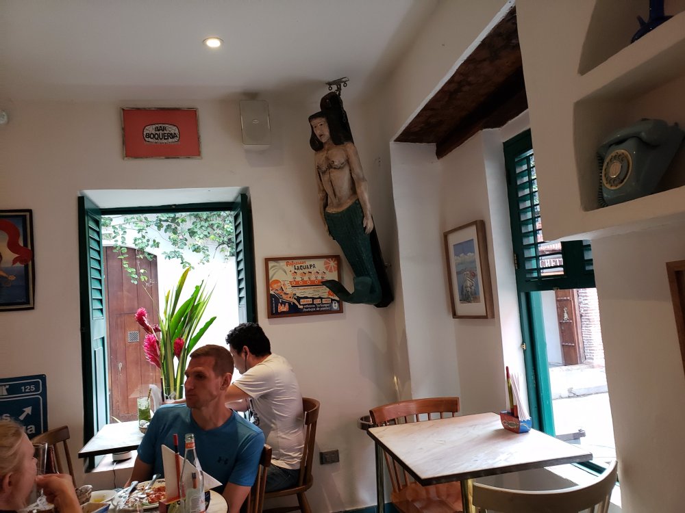 Opened in 2001 and famously visited by Anthony Bourdain, La Cevicheria has become one of the most popular restaurants in Cartagena. The ceviches are unique and interesting, as expected, and the scene is light, airy and very fresh in this cute, little ceviche cafe. We tried the Peruvian ceviche, Colombian ceviche and a shrimp cocktail to get a feel for their breadth of expertise. It was unique and enjoyable, albeit relatively expensive for this pirate town. We recommend dining inside to avoid persistent vender annoyances and the street spectacle which is constant nowaday outside the restaurant. Also, I see a lot of people ordering newly expanded upon menu items with dishes that make no sense here and then get disappointed that they are just ok. The place is called La Cevicheria, so order the ceviches!