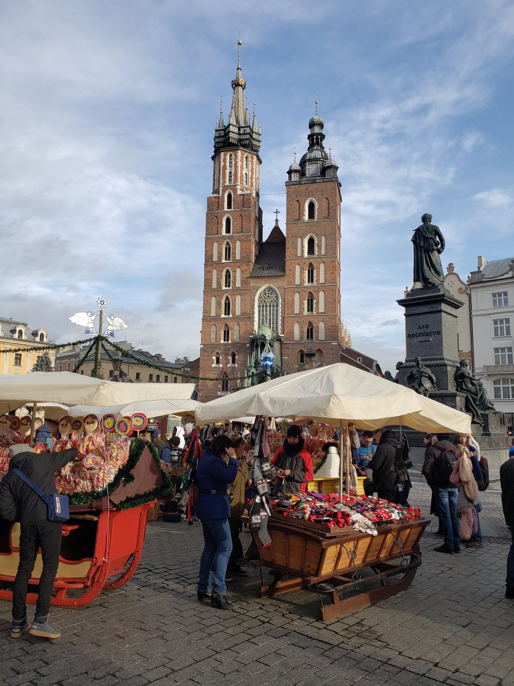 Christmas markets in Europe are a real thing these days, and Krakow has one of the best in all of Europe. This is in part because they happen to have the largest mid-eval main square in Europe, and because its popular with tourists. They remain open for months instead of just the typical weeks leading up to the holiday. And Krakow doesn’t skimp on the decorations either! We eenjoyed strolling the enchanting streets. They have tons of handcrafted goods, homemade foods, and lots of sweets and treats for the whole crowd to enjoy. We tried the kielbasi, perogies, and sourkraut and some chocolates that were excellent!